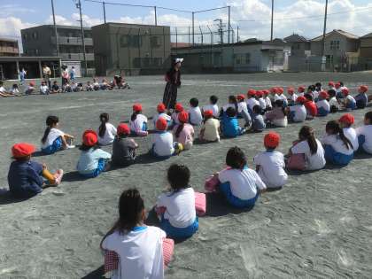 今日は、避難訓練が行われました。どの子も、自分で考え「よいこ」を意識して避難できました。