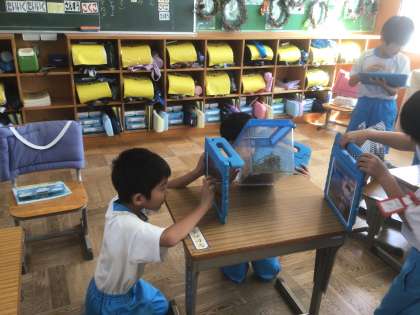 飼っていた虫さんとの別れをおしみ、撮影タイムをとりました。みんな、愛おしそうに写真におさめていました。「かわいい写真とれた!」「こっち向いて!いいね」などと声をかけ、素敵な学習ができたんだな、と感じた時間になりました。