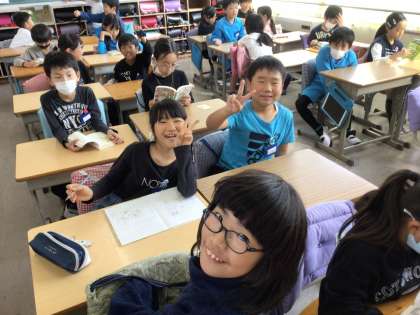 給食を食べ終わって、読書をしていました。