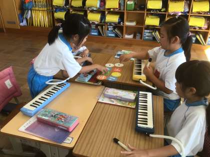 できました!グループで作った素敵な旋律です。一つ一つの音のイメージやつなげてできた音の流れを