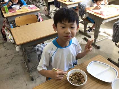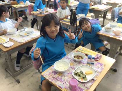 月曜日の給食の様子です。明るい雰囲気の中食べていました。
