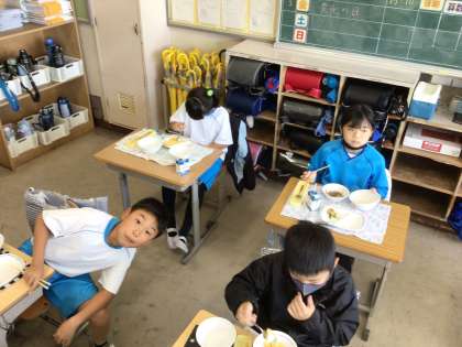 この日のメニューは、ご飯、すき焼き風煮、卵焼き、サラダ、牛乳でした。