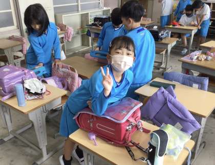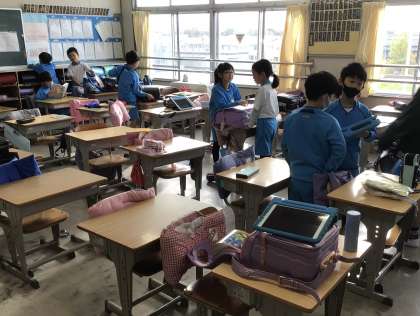今朝の様子です。今は天気もよく3時間目のスポーツフェスタ練習もできそうです。