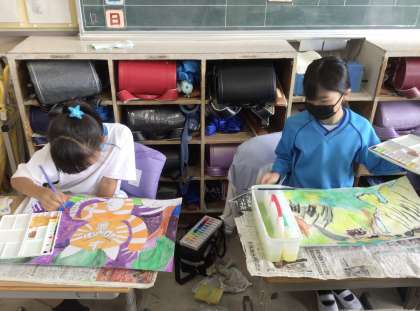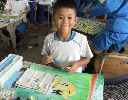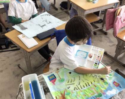 今日は、読書感想画の完成を目指しています。「おどりトラ」の立派な虎の絵を描いている子が多いです。