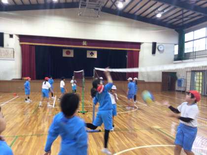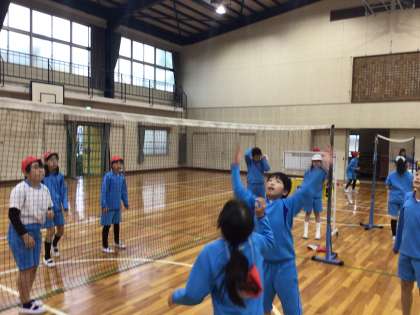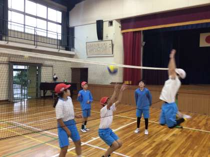 ソフトミニバレーボールの学習の様子です。3段攻撃をブロックする動きも出てきました。