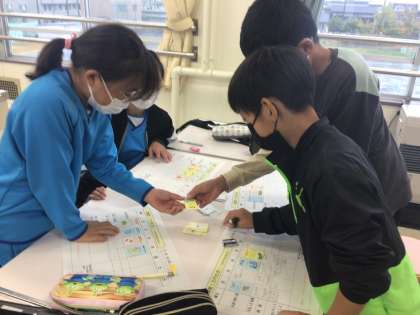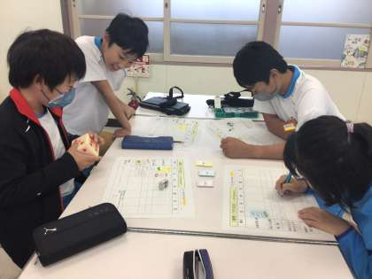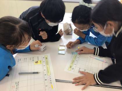 家計維持の疑似体験をするゲームを行いました。サイコロの目によって「買わなきゃ!カード」「どうしようかな?カード」「アクシデント!カード」を引き、10,000円をどのように使っていくか考えるものです。今回は、0円に一番近い人が⭕️。実生活でも、限られた予算を有効に使おうと考えられると良いですね。節約も大事。でも消費しないと家庭生活が成り立たない。その辺りのバランスが大事だと気づくことができた子が多くいました。家庭での消費生活に役立ててくれたら幸いです。