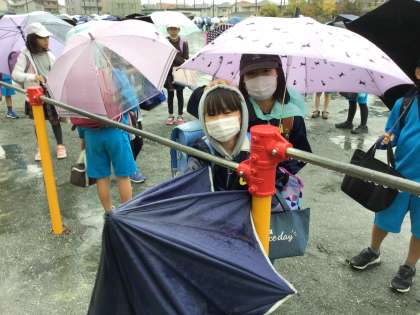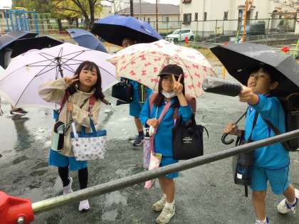 金曜日は、雨が降る中の下校となりました。それでも、元気よく笑顔で帰っていきました。明日も元気に会いましょう。