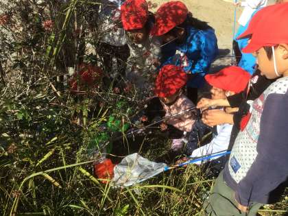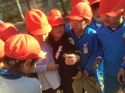 自然のたからばこで、秋の虫たちを探しました。もうそろそろ、寒い季節の準備中かな?と思ったら、まだいましたよ。この虫です!