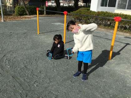 1組の授業です。太陽の光を鏡を使って跳ね返し、気付いたことをノートにまとめました。