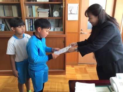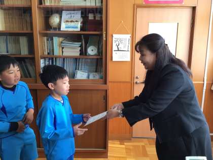 一人一人、校長先生より名前を呼ばれ、表彰状をいただきました。