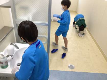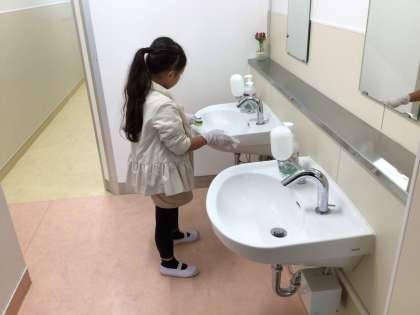 1階の手洗い場とトイレの掃除の様子です。隅々まで綺麗にしてくれています。