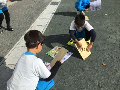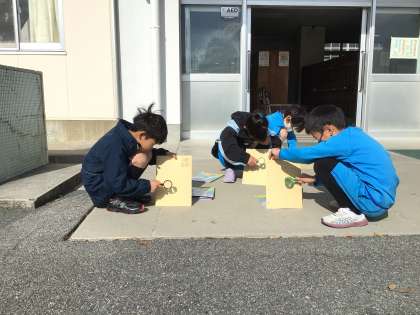 今日は、虫眼鏡を使って紙に日光を集めました。紙と虫眼鏡の距離を変えながら明るさとあたたかさを確認しました。