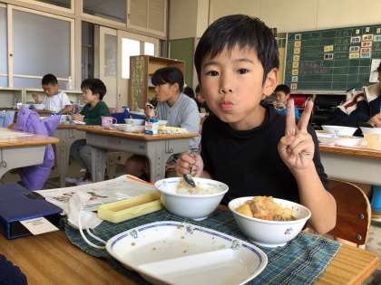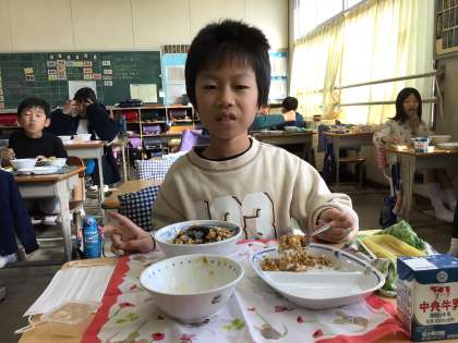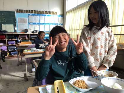 火曜日の様子です。この日のメニューには、子ども達の大好きな納豆があり、笑顔で食べていました。