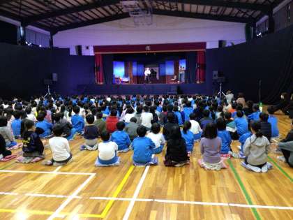 観劇会の前半が終わると10分間の休憩の時間がありました。とても、盛り上がっていました。どの子もとても興味をもって鑑賞していました。