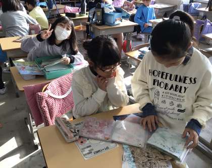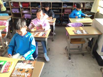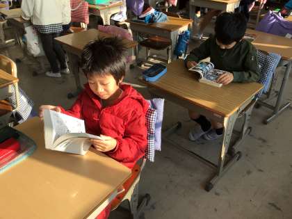 今朝の様子です。読書をしたり折り紙で遊んだりしています。
