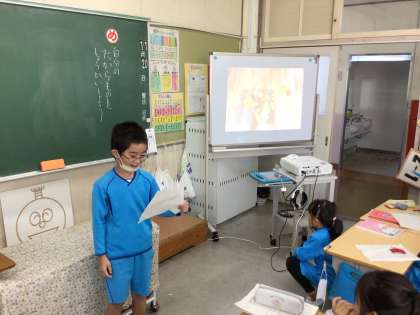 国語の授業では、自分の宝物を写真付きで紹介しました。