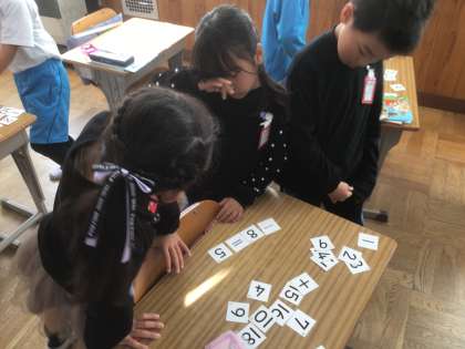 たし算やひき算の数あてゲームをしました。計算の仕方を考えたり、問題を出し合ったりして楽しみました。