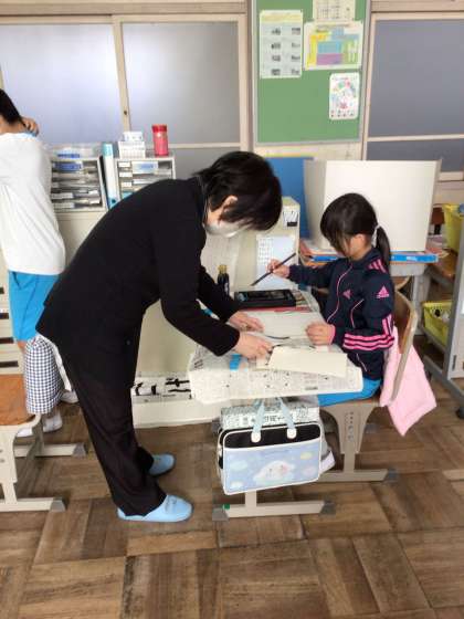 書写ボランティアの先生から、一人ひとりの良いところ、気をつけることを教えていただきました。