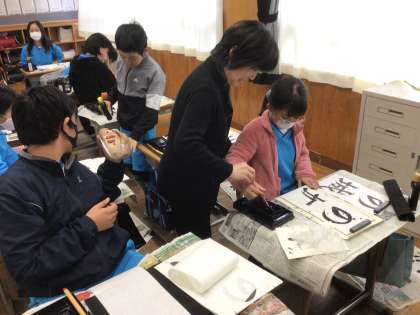 書道協会の水谷先生を講師としてお招きし、書き初めのコツを教えてもらいました。