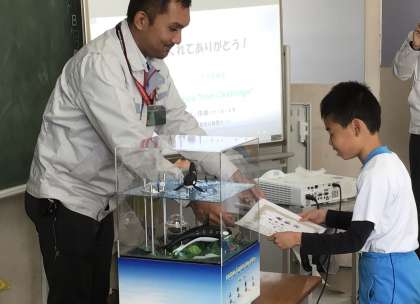 乗り物デザインコンクールでの表彰がありました。トヨタ技術会の方から、作品のミニチュアもいただきました。