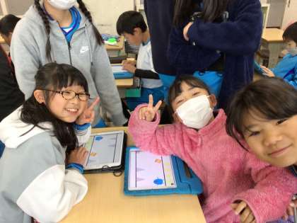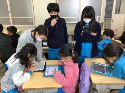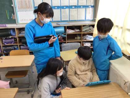 5年4組が3年2組に来ました。5年生がSpringinで作った防災の作品を紹介してくれました。