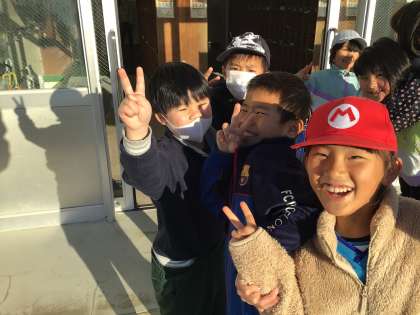 冬休み前の朝の様子です。朝の挨拶活動は終わりましたが、積極的に挨拶を盛り上げようと進んでボランティアに参加しています。