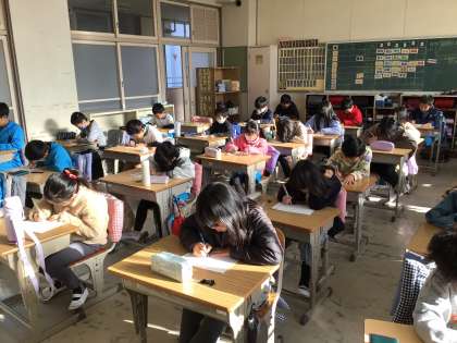 新出漢字テストを行いました。漢字の練習を頑張っている子が多く100点満点の子が多くいます。今回で40回目のテストですが、30回以上100点満点の子もいます。
