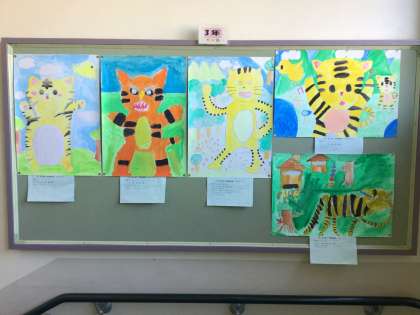 西階段の2階と3階の間に読書感想が掲示してあります。