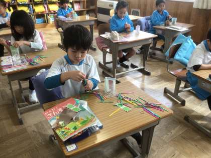 「大きいかず」の学習です。かぞえぼうを使って、数えたり読んだりしました。道具を使うと、楽しいようです。みんな夢中です。