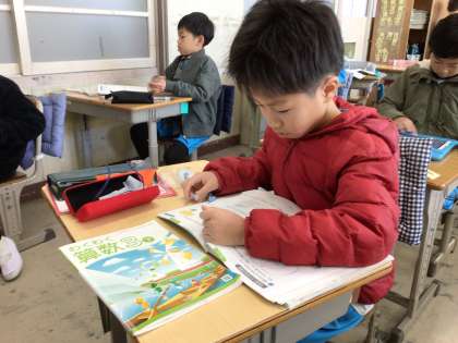 教科書の練習問題が早く終わった子は、問題集やドリルプラネットで復習問題に取り組んでいます。