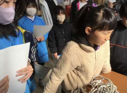 長縄大会にエントリーしたチームの代表者が長放課に6年多目的室に集合しました。大会説明の後、練習用の長縄を受け取りました。