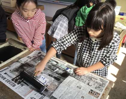 デザインが完成した子はインクをつけています。