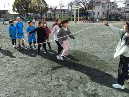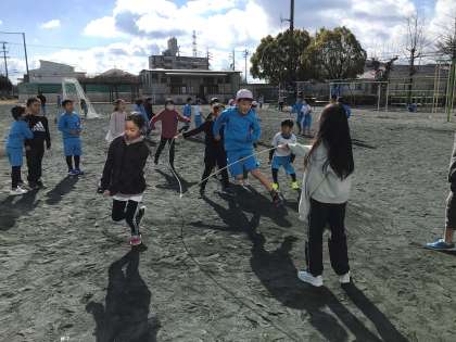 1組の様子です。長縄ギネスに向けて出場チームが練習しています。