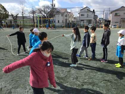 途切れることなく1人ずつ上手に跳んでいます。