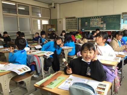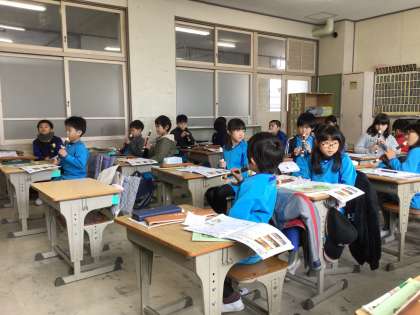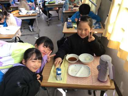 音楽の授業と給食の様子です。