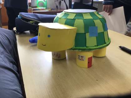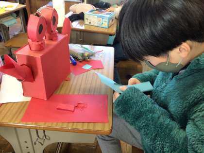 理想の学校を考えて、箱を使って作りました。アイデア様々!ソーラーパネルやごみ収集など、環境を考えたものが多いです。