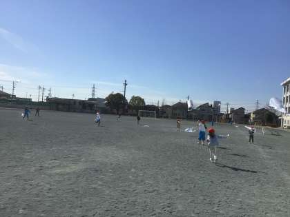 暖かい日差しの中、たこあげをしました。たこあげが、とっても上手にできるようになりました。