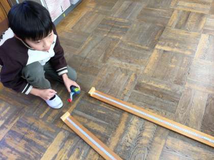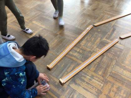 理科で、電気を利用した車を走らせました。大興奮でした!