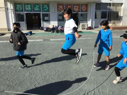 月曜日の学級活動で、なわとびの練習をしました。チームで協力をして練習しました。