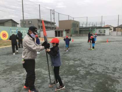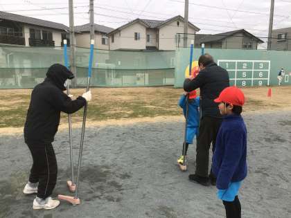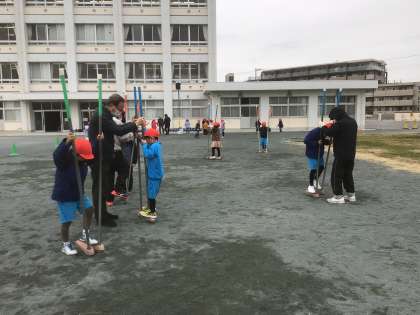 運動場では、竹馬とけん玉を教えていただきました。やってみせていただくと、憧れの眼差しで自然に拍手をしている子どもたちでした。
