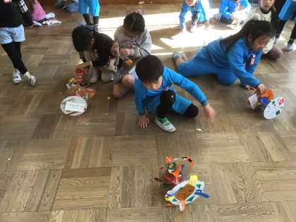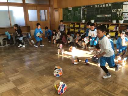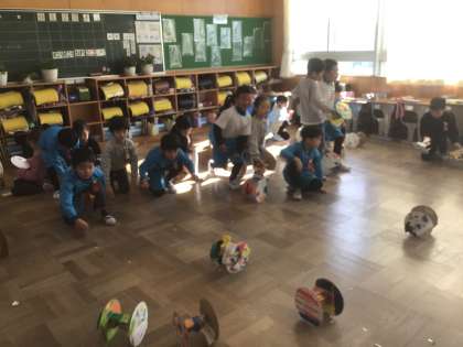 「かみざらコロコロ」の学習です。みんなでコロコロ大会を行いました。遠くに転がしたり、すてきなデザインを選んだりしてみんなで楽しみました。