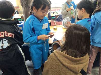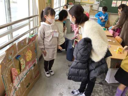国語科で学習した話型を利用し、おもちゃの遊び方を一生懸命説明しました。上手に説明できた子は名人カードにシールをはってもらいました。