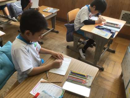 「まなびフェスタ」でのがんばりを手紙に書きました。手紙には、練習してきたことや、毎日の発表の様子を見て、すごいね!すてきだったよ!と書いていました。