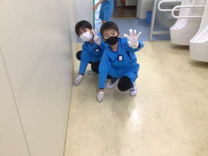 トイレと昇降口の掃除です。