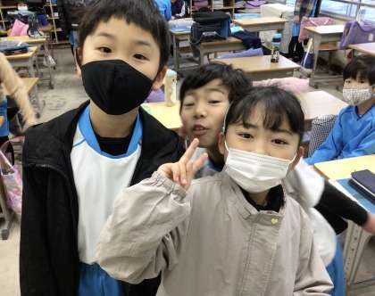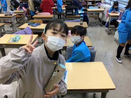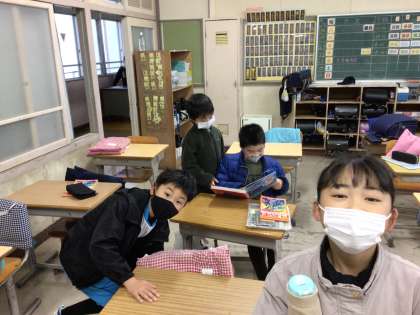 今朝の様子です。昨日、教室の床にワックスを塗ったので床がとても綺麗でした。