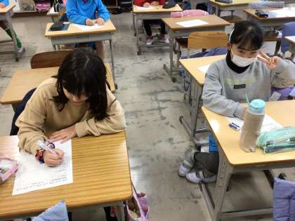 最後に、総合的な学習の振り返りを書きました。ここまでの苦労したことを思い出しながら真剣に書いていました。
