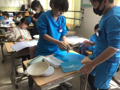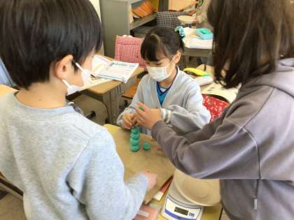 3組の様子です。粘土の形を変えたときの重さをくらべました。