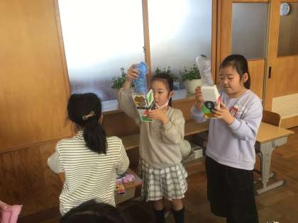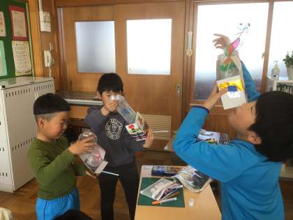 「にょきにょきとび出せ」の学習です。箱の中から、何が出てくるかな?