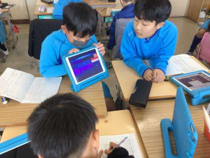 全体の場で発表した後に、同じグループの友達に向けて発表しました。