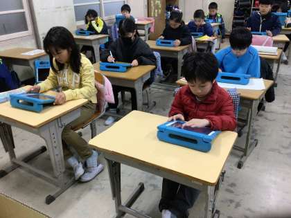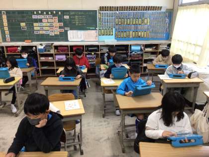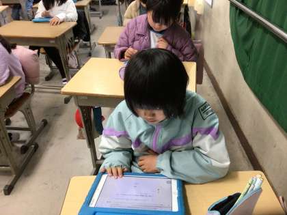 今日は、学習用タブレットを使って練習問題に取り組みました。